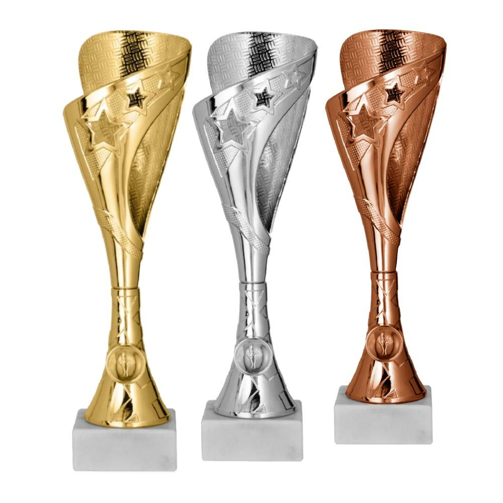 Disponibilă în variantele clasice aur, argint și bronz, ideale pentru locurile I, II și III.