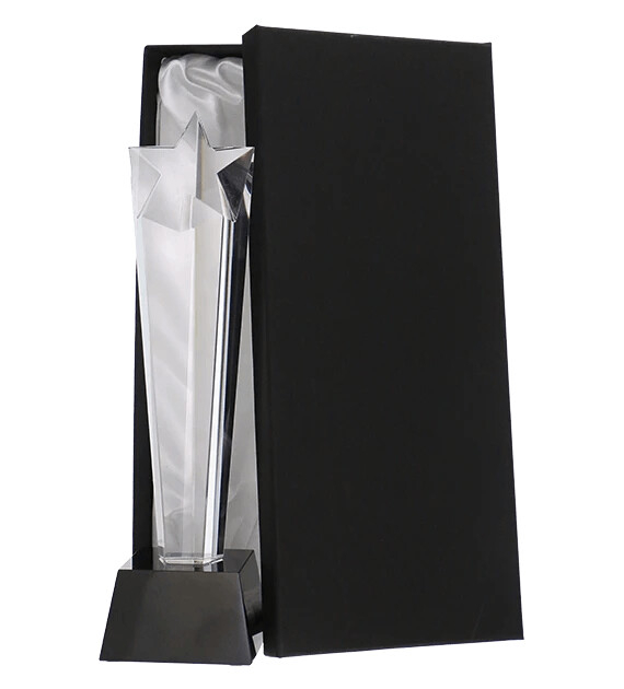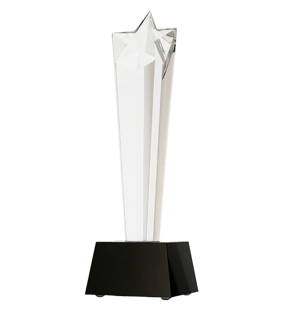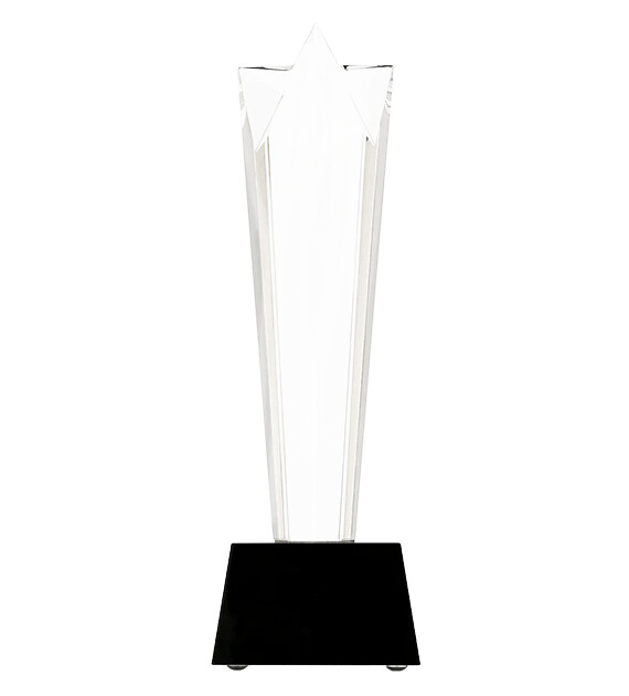 Designul său subțire, în formă de stea, realizat din sticlă cristal pe bază solidă, conferă fiecărui trofeu un caracter
