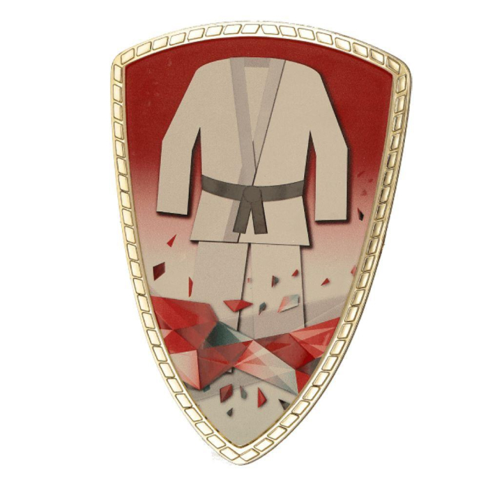 Realizat din plastic rezistent cu finisaj auriu, acest scut combină durabilitatea cu designul tematic, fiind potrivit atât pentru antrenamente individuale, cât și pentru premiere sau evenimente sportive.